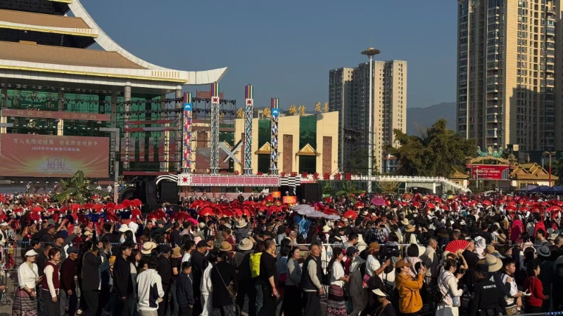 2026年2月20日,2026年芒市新春目瑙纵歌在芒市广场举行。新华网 穆问春 摄